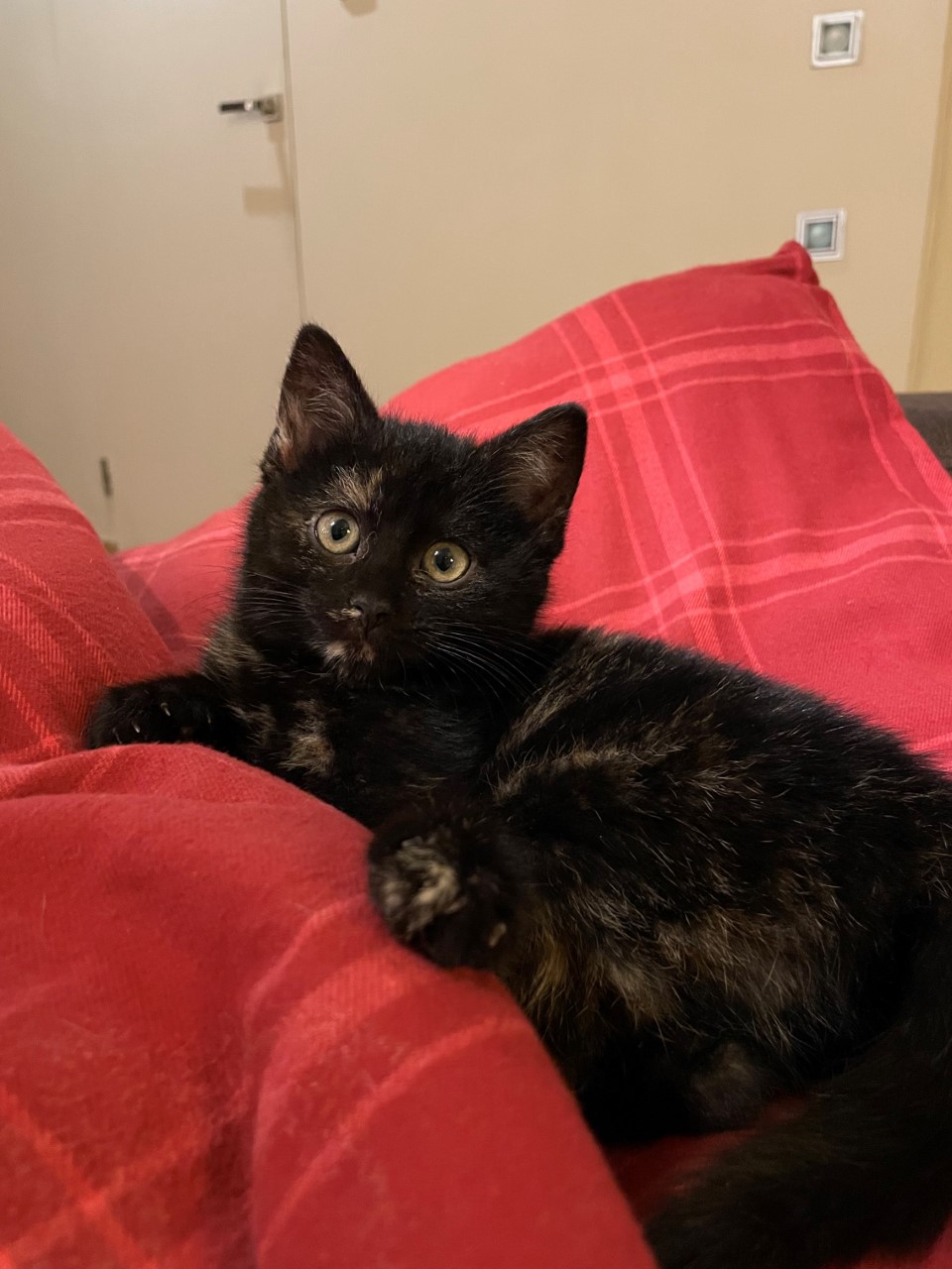Nuka to kot typu "niedźwiadek" :) dziewczyna uwielbia się przytulać, spanie najlepsze jest na człowieku i to po prostu 100% cukru w cukrze, czyli słodziak nad słodziaki. Jak na takiego malucha Nuka jest niesamowicie grzeczna, pięknie się bawi i ciekawi