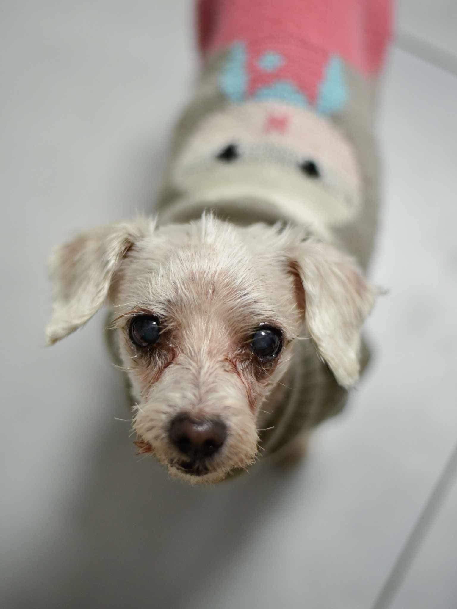 Historia Gruszki jest bardzo smutna. Ta niewielka starsza sunia została odebrać z domu, w którym żyła w strasznych