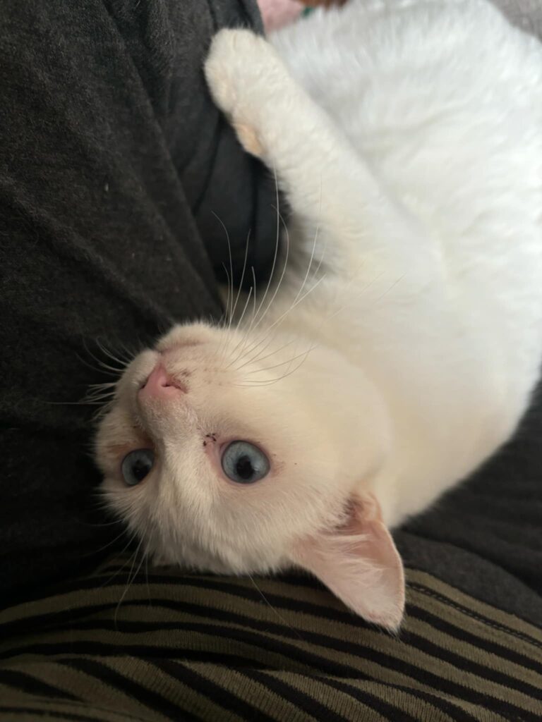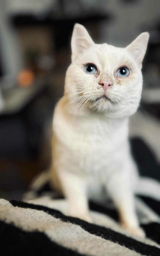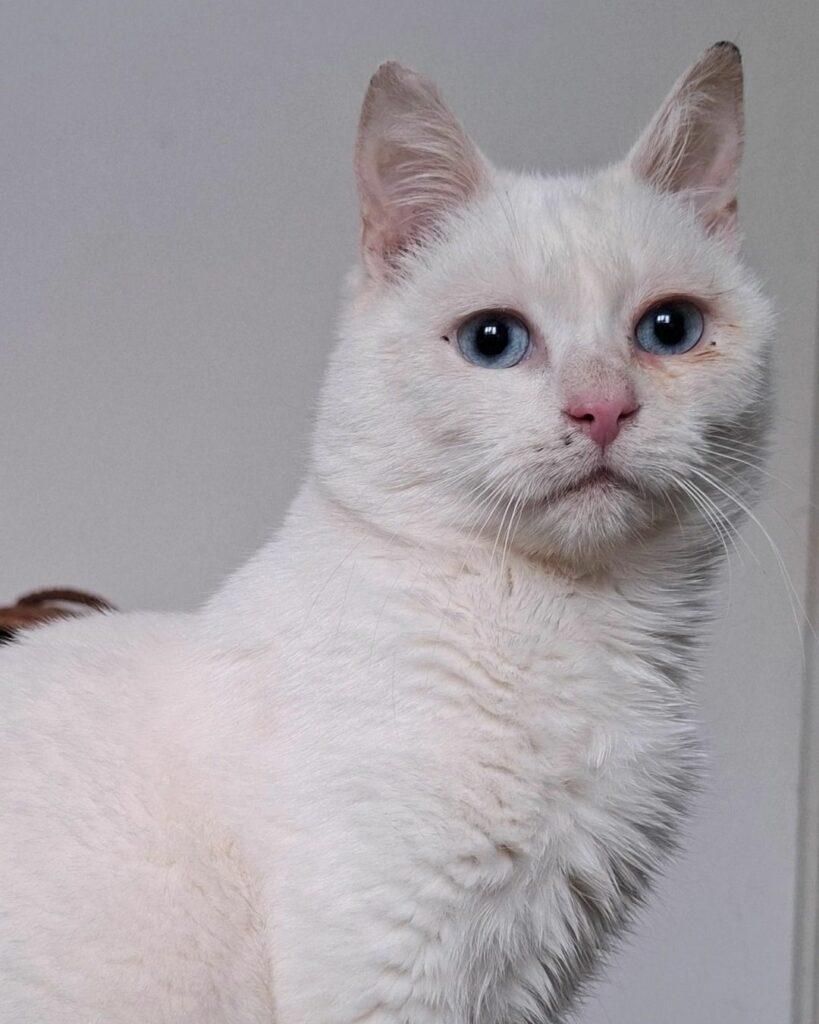 Philomena to kotka, która zapiera dech w piersiach. Jej śnieżnobiałe futerko i niebieskie oczy głębokie jak ocean nie pozostawiają wątpliwości – to prawdziwa dama wśród kotów. Ale uroda to tylko początek jej wyjątkowości.