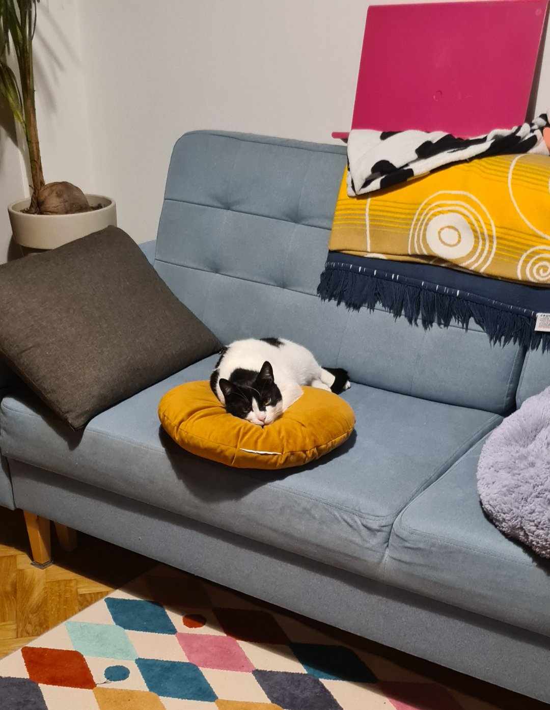 Sandacz przebywa w domu tymczasowym, gdzie już pierwszej nocy pokazał, że jako prawdziwy wiejski kot, zamierza spać na łóżku w puchowych podusiach <3 Szybko ogarnął kuwetkę, dom tymczasowy jego kastrację, więc chłopak jest już PO.