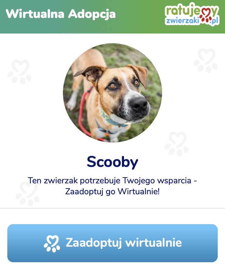 Jeśli chcesz wspomóc Scoobego, możesz adoptować go wirtualnie.