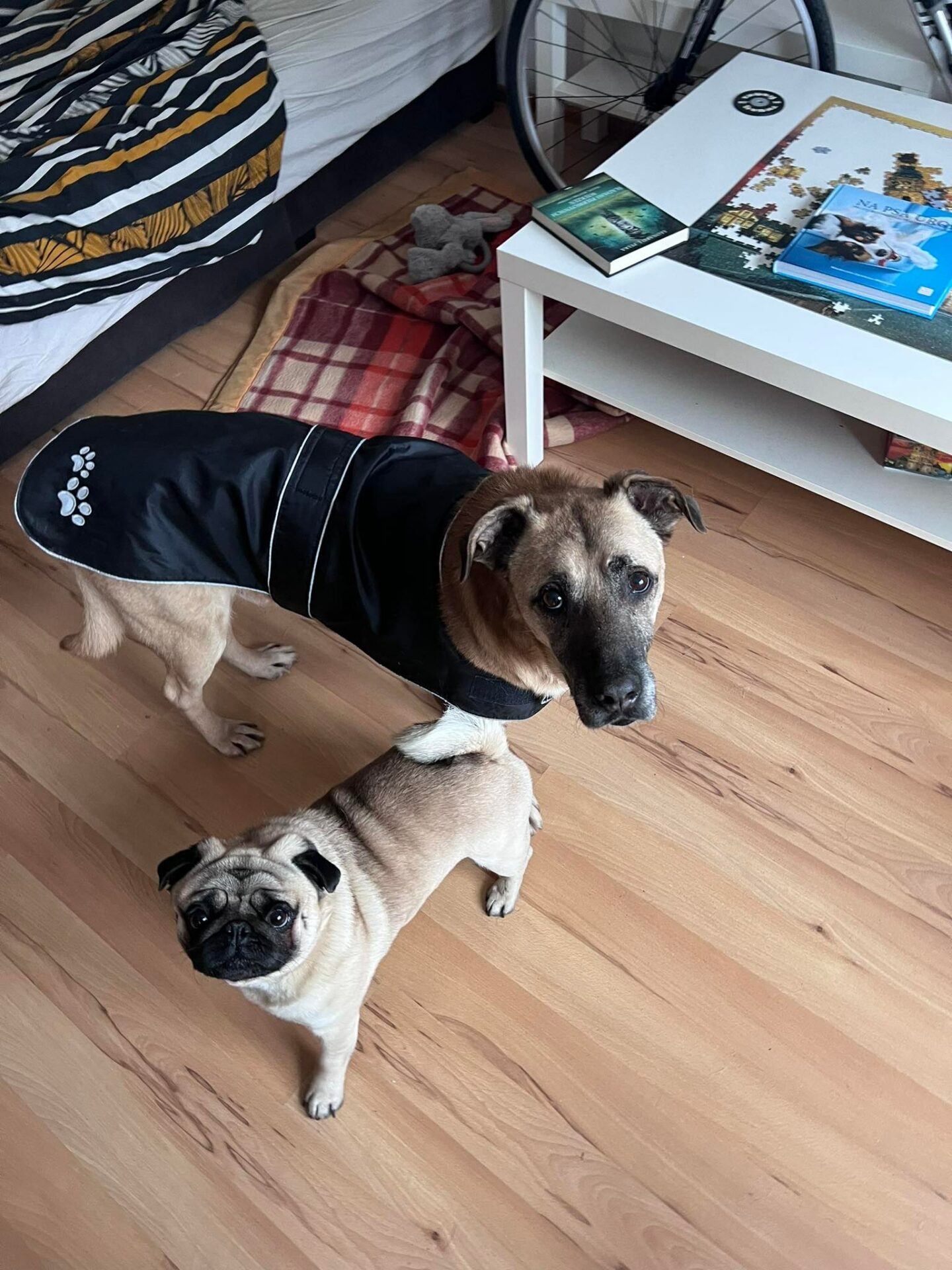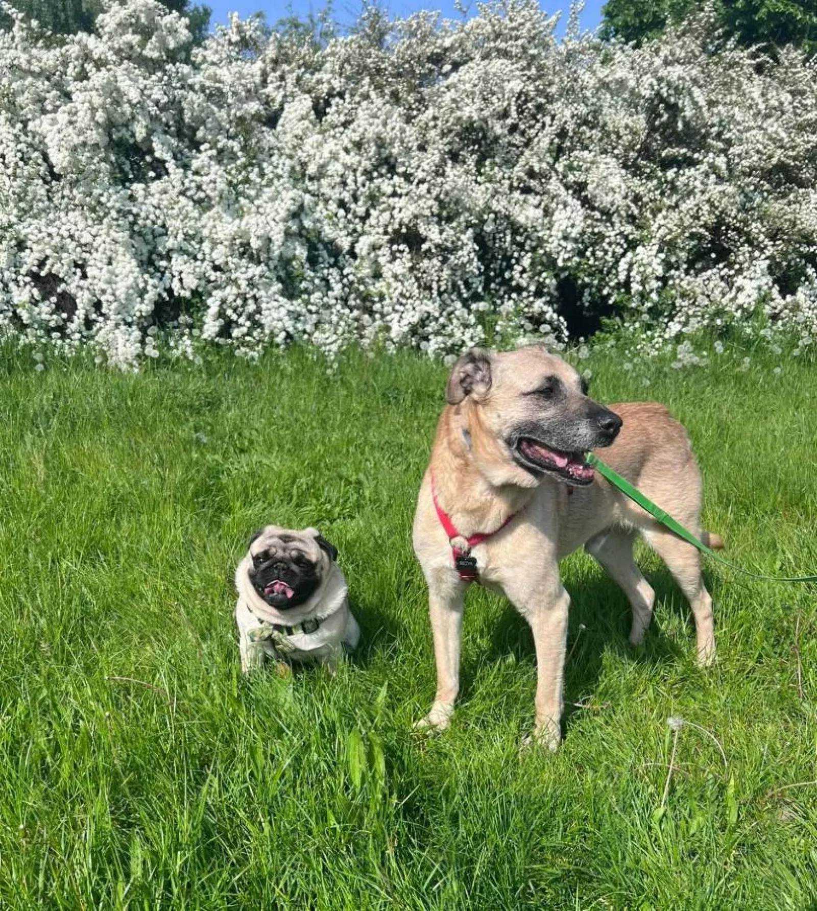 Dlaczego? Bo pierwsze kroki na spacerach Beż stawiał dopiero w schronisku, kiedy miał już 9 lat. Wcześniej jego świat ograniczał się tylko do klatki. W szczenięcym życiu zabrakło mu odpowiedniej socjalizacji z otaczającym go światem. W efekcie Beż jest psem lękliwym. Wiele swoich strachów pokonał, wspierając się na ukochanym opiekunie i psim towarzyszu, ale niektóre stanowią dla niego zbyt duże wyzwanie.