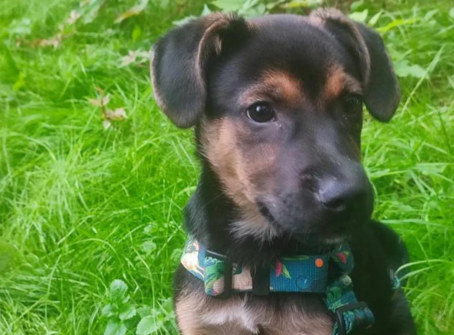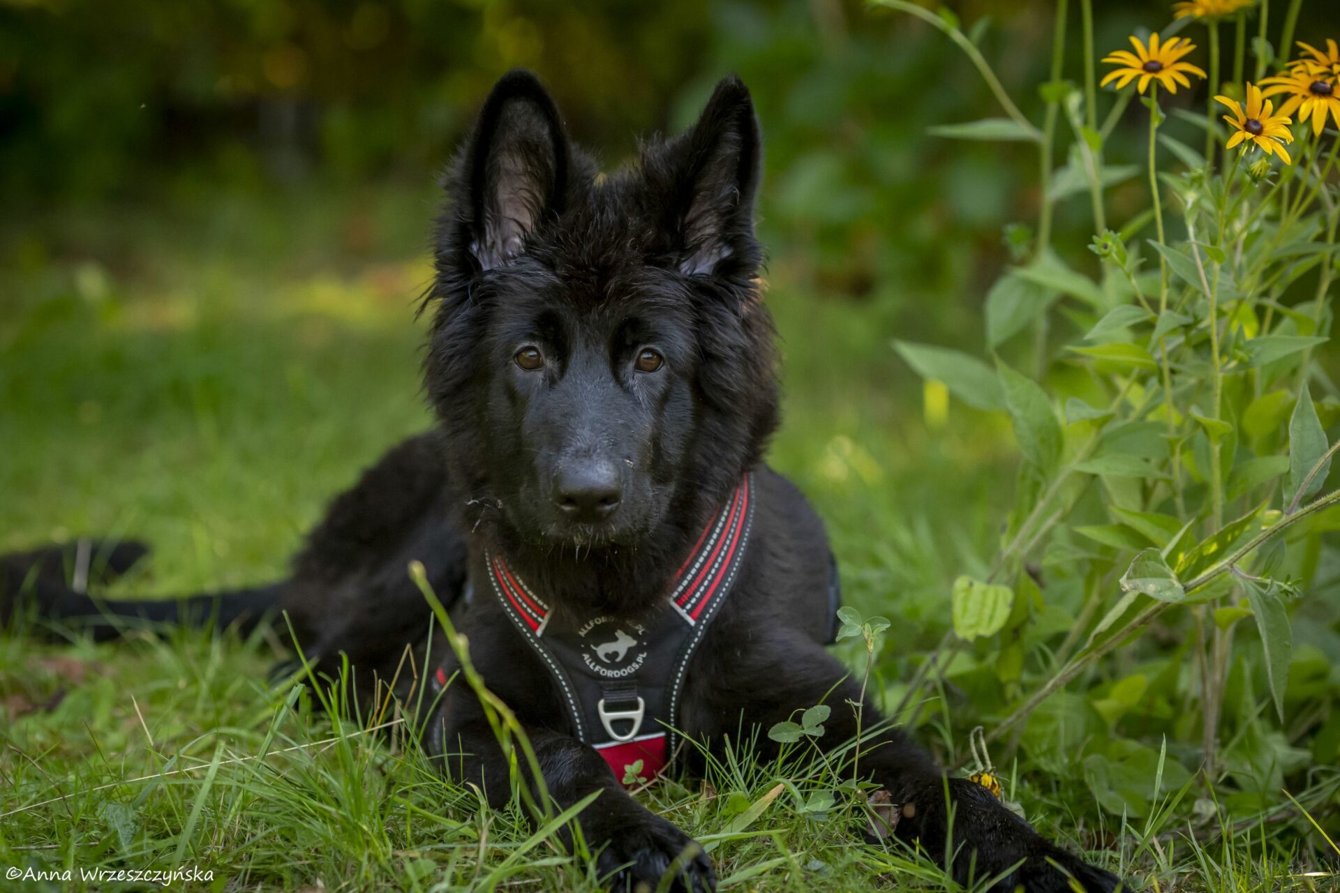 Ma 8-10 tygodni, waży na razie 5 kg (stan na początek września). Jest wulkanem energii i zachowuje się jak typowy szczeniak - potrzebuje zabawy, gryzienia.