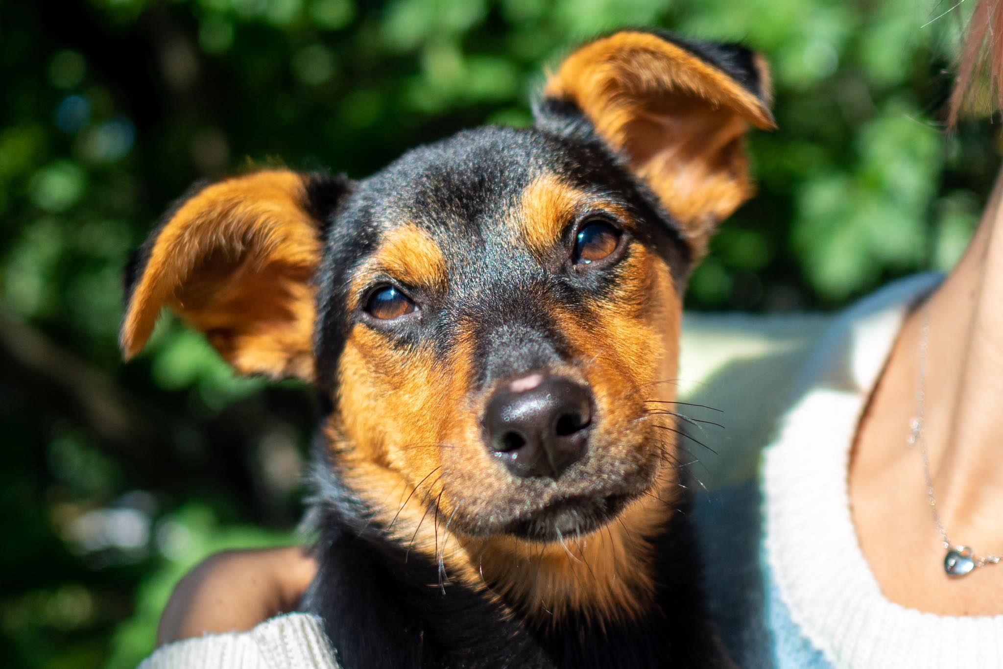 Jessie ma pół roku (urodzona w okolicach kwietnia 2023), waży nieco ponad 5 kg. Jest bardzo energiczną, potrzebującą uwagi psiną. Uwielbia spać w łóżku i być zawsze blisko człowieka, ale umie też zostawać sama w domu. Świetnie dogaduje się z
