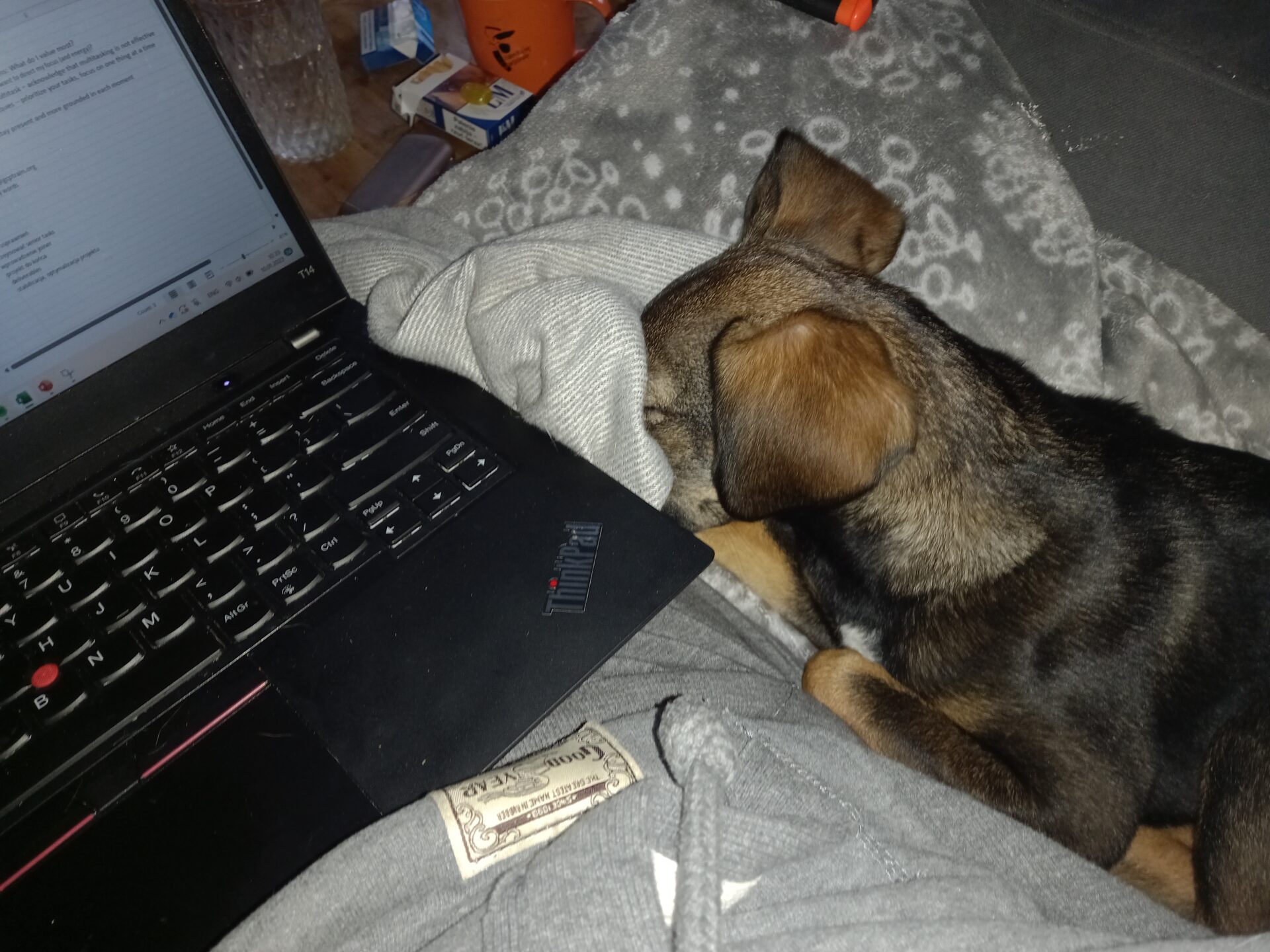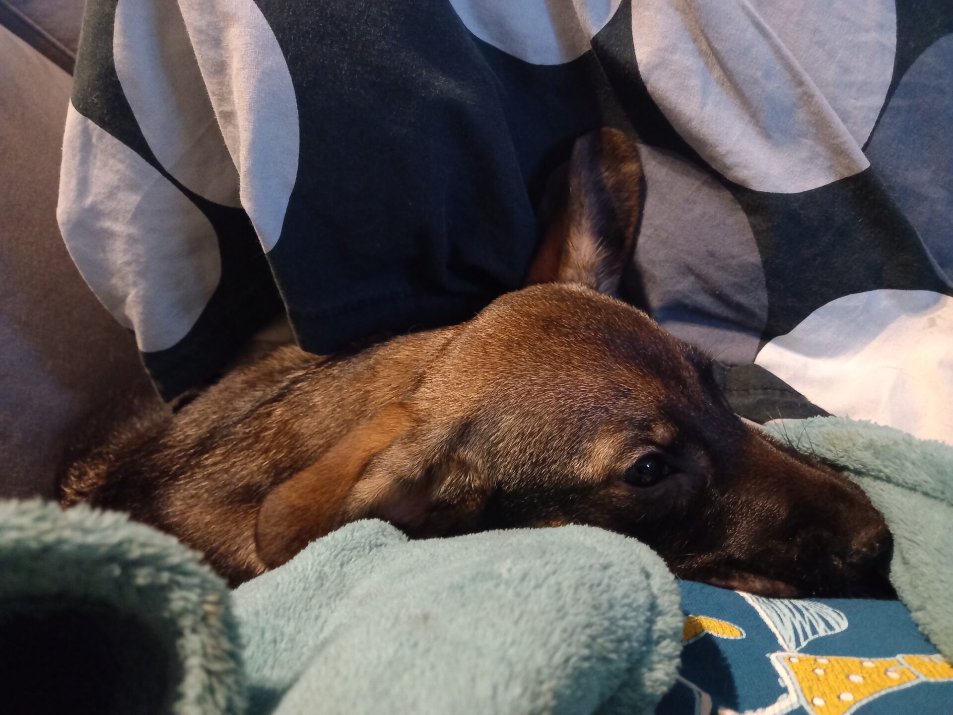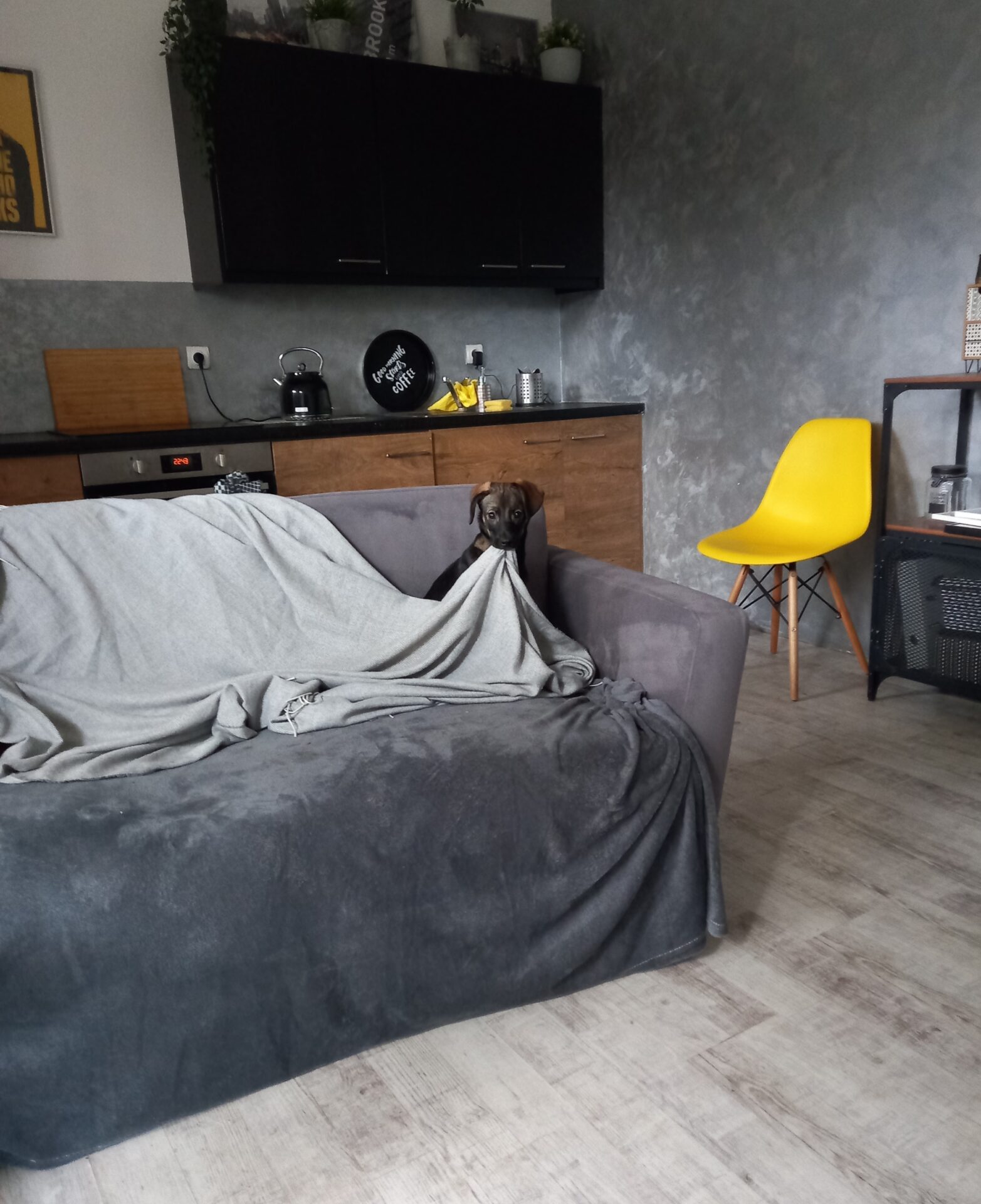 Czym Chilli lubi się bawić? Wszystkim, a najbardziej tym, co nie jest przeznaczone do zabawy 😉 Jeśli chodzi o spanie, to preferuje pod kołdrą blisko człowieka. Potrzeby fizjologiczne na ten moment lubi załatwiać obok maty.