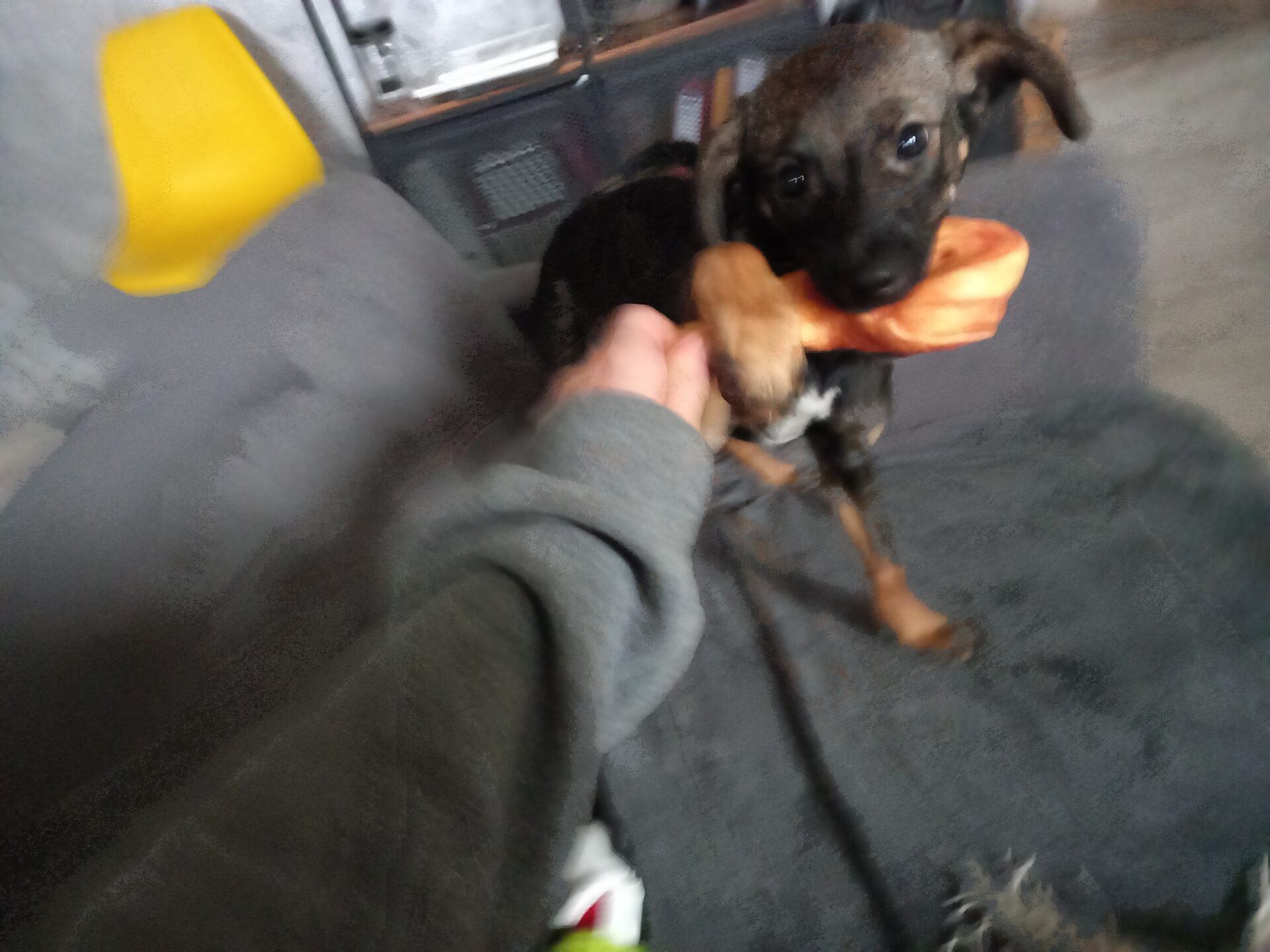 Chilli (ur. ok. początku 10.2022) to bardzo energiczne stworzenie. To piesek, który dosłownie i w przenośni chce wejść na głowę. Cały czas zabiega o uwagę i chce bawić z człowiekiem lub psem rezydentem. W domu tymczasowym uczy się samodzielności, zajmowania sobą i tę naukę należy konsekwentnie kontynuować w domu.