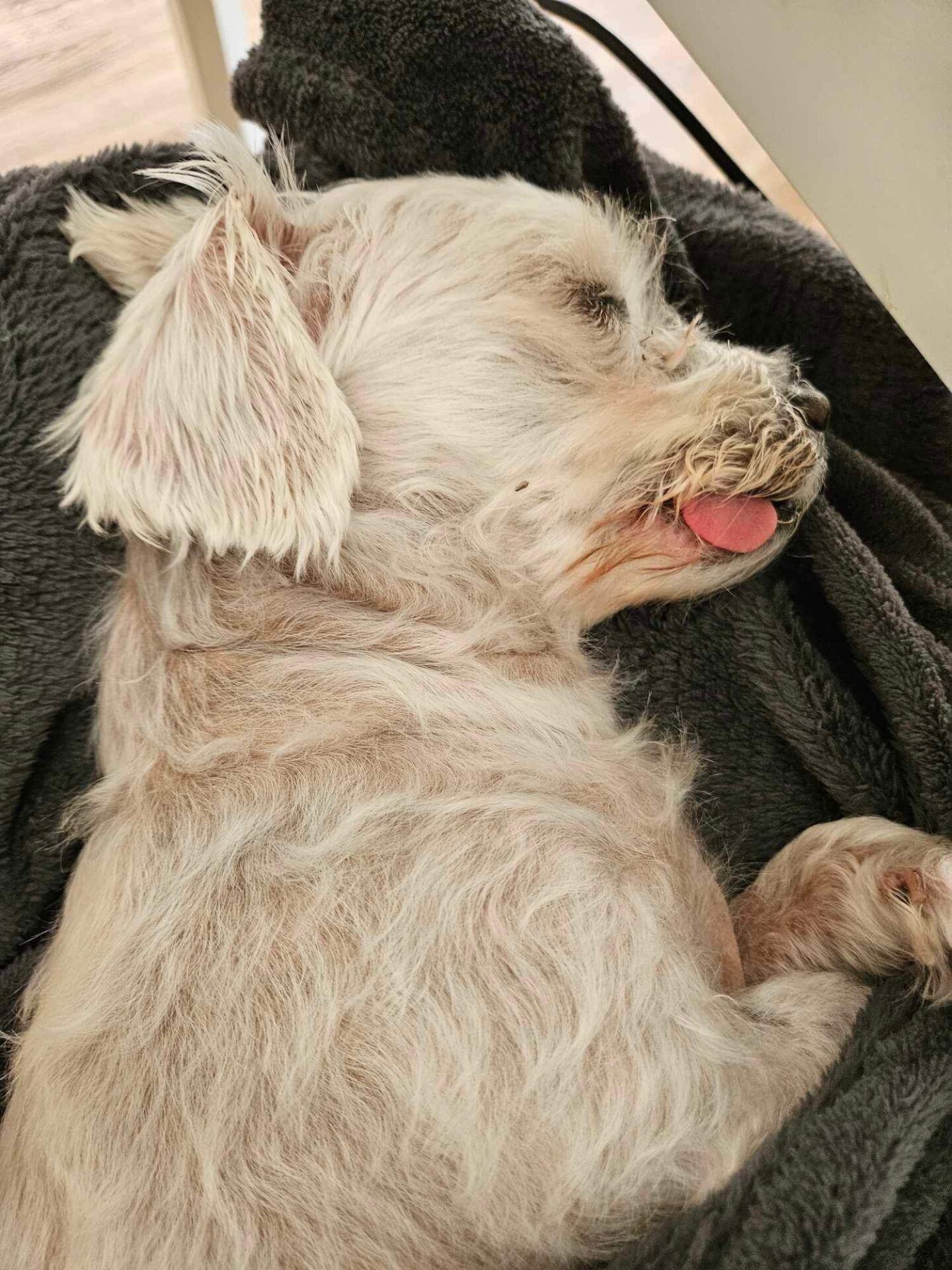 Historia Gruszki jest bardzo smutna. Ta niewielka starsza sunia została odebrać z domu, w którym żyła w strasznych warunkach.