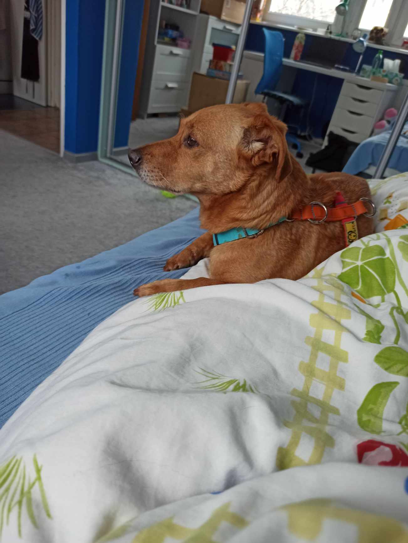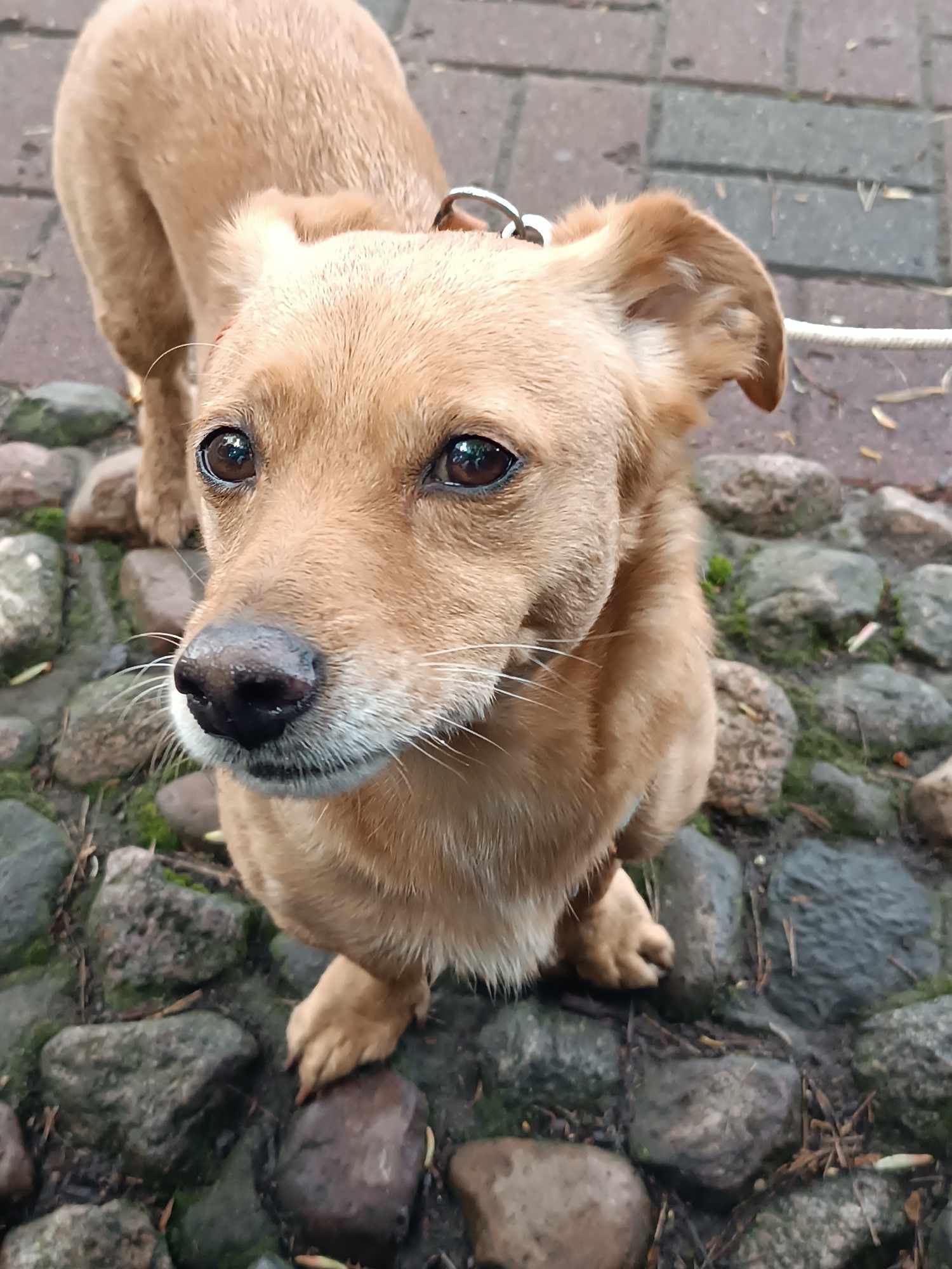 Nic dziwnego. Jest młody i filigranowy, a tak dużo już w życiu przeszedł. Ten niby jamnik, niby corgi potrzebuje już tylko stabilizacji i miłości, aby mógł robić kolejne postępy socjalizacyjne. W obecnym domu odwagi dodaje mu suczka rezydentka.