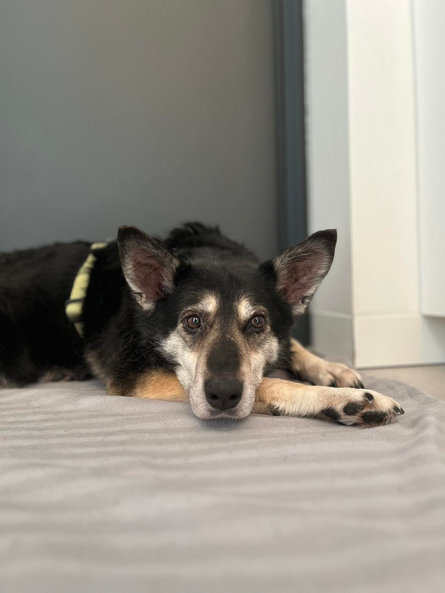 Meliska najbardziej lubi poranki, kiedy wita się z opiekunami merdając ogonkiem 🙂 Większość czasu w domu grzecznie przysypia. Nie niszczy i załatwia się tylko na dworze. Bez problemu dała się wykąpać i wyczesać.