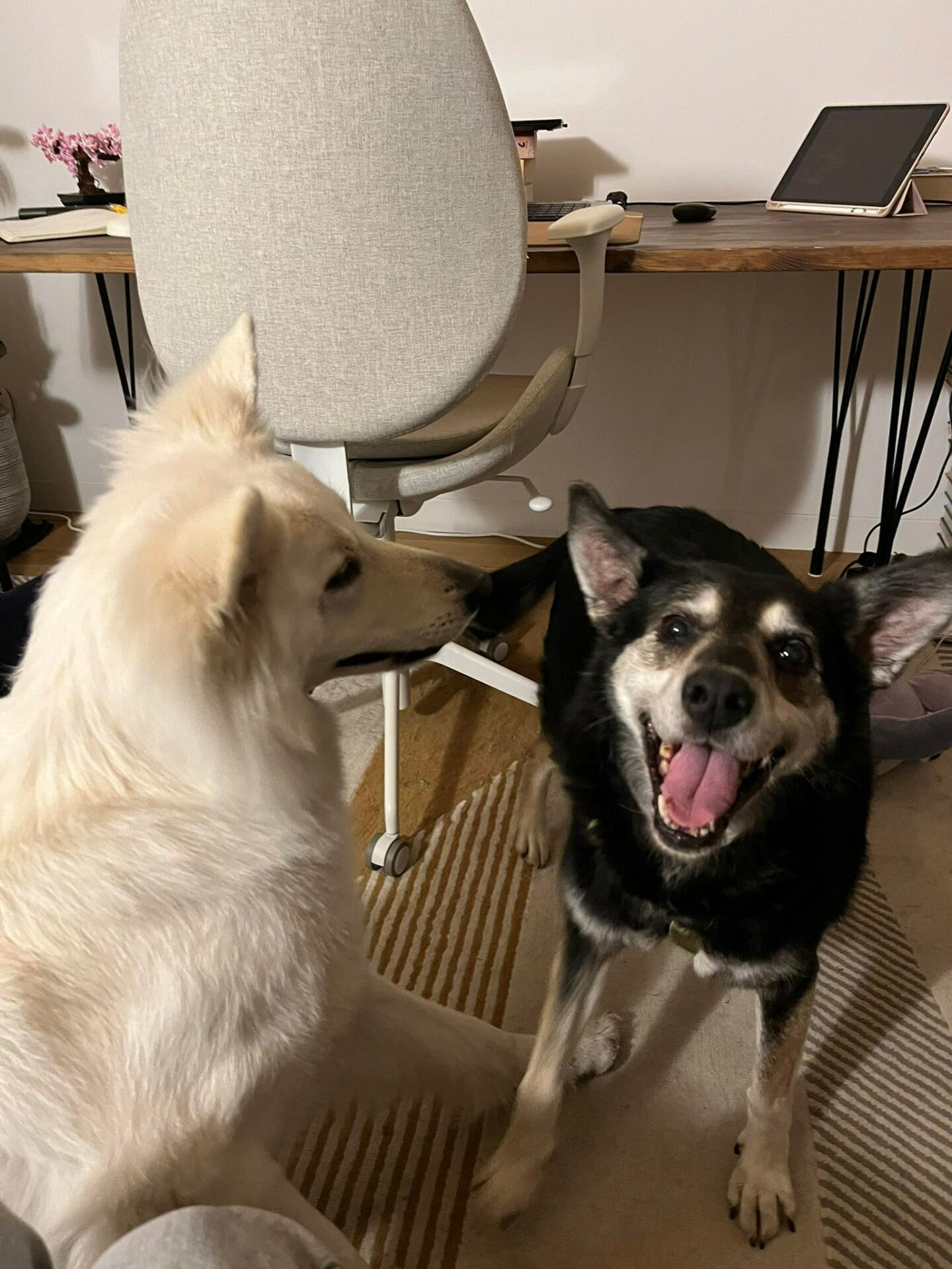 Meliska nie ma żadnych problemów z innymi psami. Sądzimy, że koty także powinna zaakceptować, bo to chodząca dobroć o łagodność 🙂