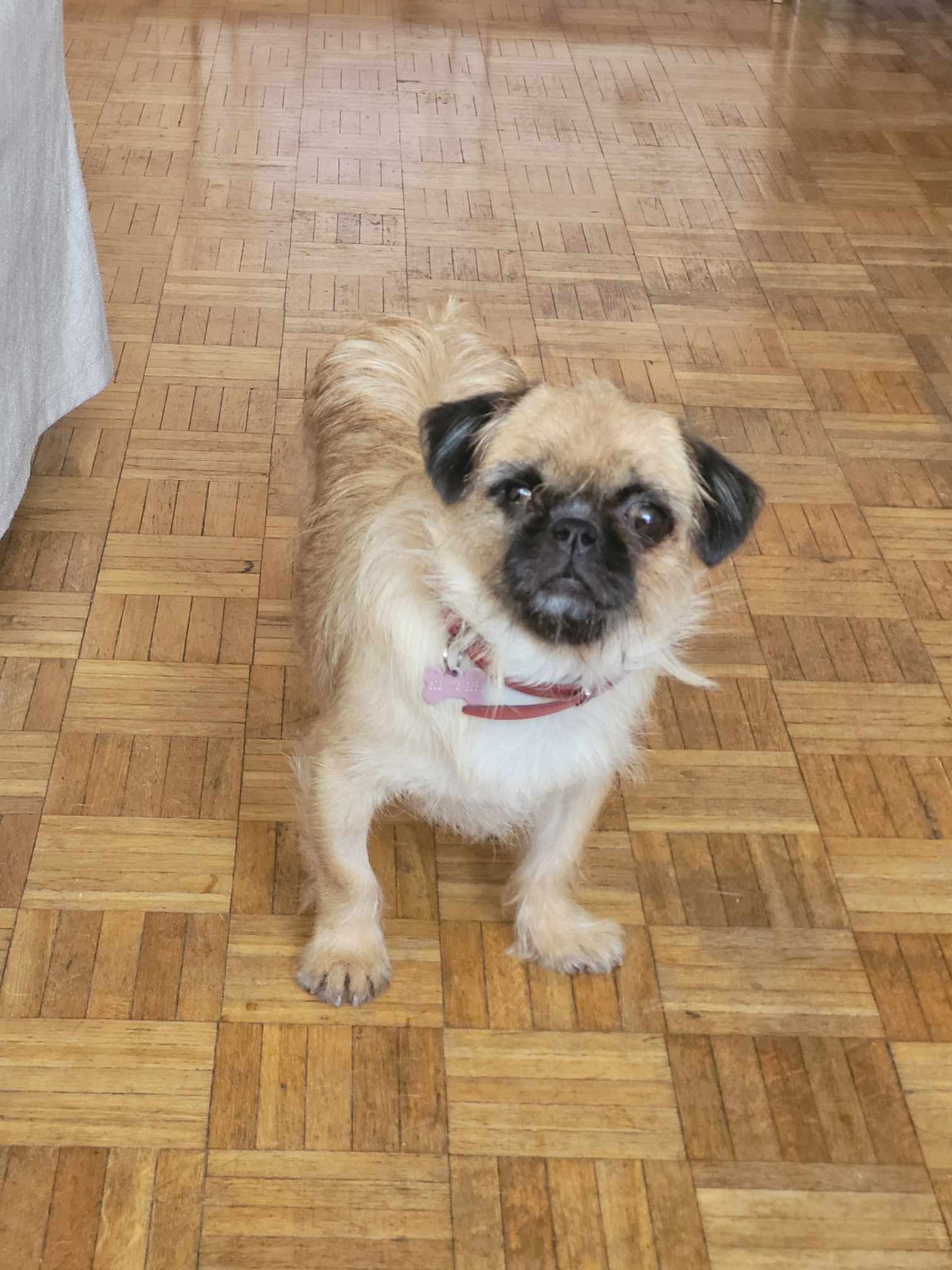 Nie ma kondycji na forsowne spacery, ale uwielbia biegać, węszyć, bawić się piłeczką. Jest pozbawiona agresji wobec kogokolwiek i czegokolwiek. Zdarza jej się jednak podgryzać w zabawie, ale uczy się, że to nie przystoi damie.