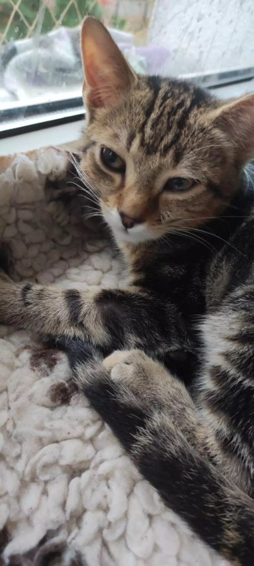 O przeszłości tego kotka wiemy niewiele. Jako maluch trafił z rodzeństwem na ulicę i po przyjeździe do domu tymczasowego był całkowicie przerażony. Nie znał ludzi, nie ufał im, a na próby kontaktu reagował syczeniem i drapaniem. Pewność siebie odnalazł jednak w kotach rezydentach, które szybko przyjęły go do swojego stada i pokazały, że człowieka nie trzeba się bać.