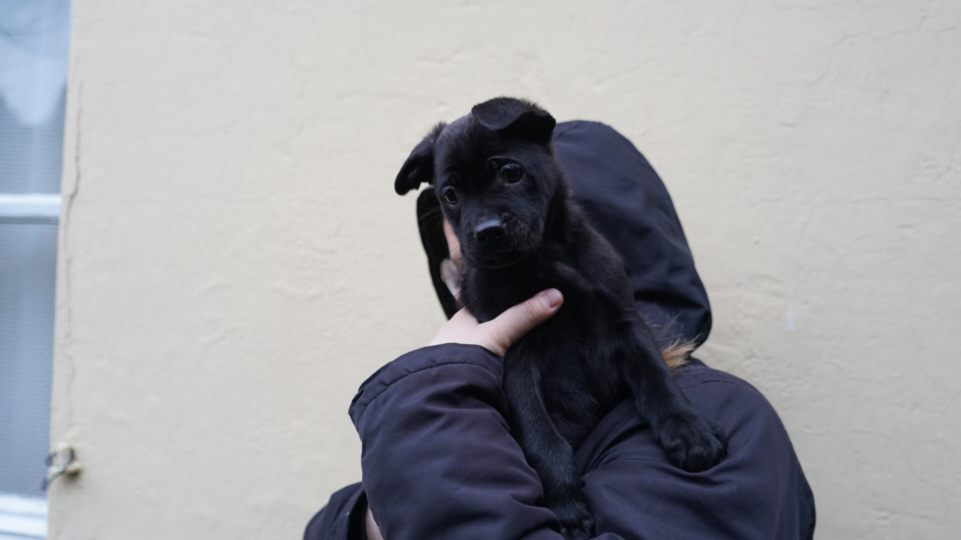 Wanda jest cała czarna, nieco mniejsza, wolniejsza i delikatniejsza od swojej siostry. Ma wielkie, piękne oczy, a jedno z jej uszek jeszcze nie do końca wie, w którą stronę rosnąć 🙂 Wandzia lubi pieszczoty, ceni sobie bliskość człowieka. Z siostrą urządzają dzikie harce i galopady po mieszkaniu, a potem zasypiają wtulone w siebie. Sunia dobrze dogaduje się ze starszymi psami-rezydentami, stara się respektować granice, jakie jej stawiają. Wobec kotów okazuje życzliwe zainteresowanie. Lubi jeździć samochodem – nie ma choroby lokomocyjnej.